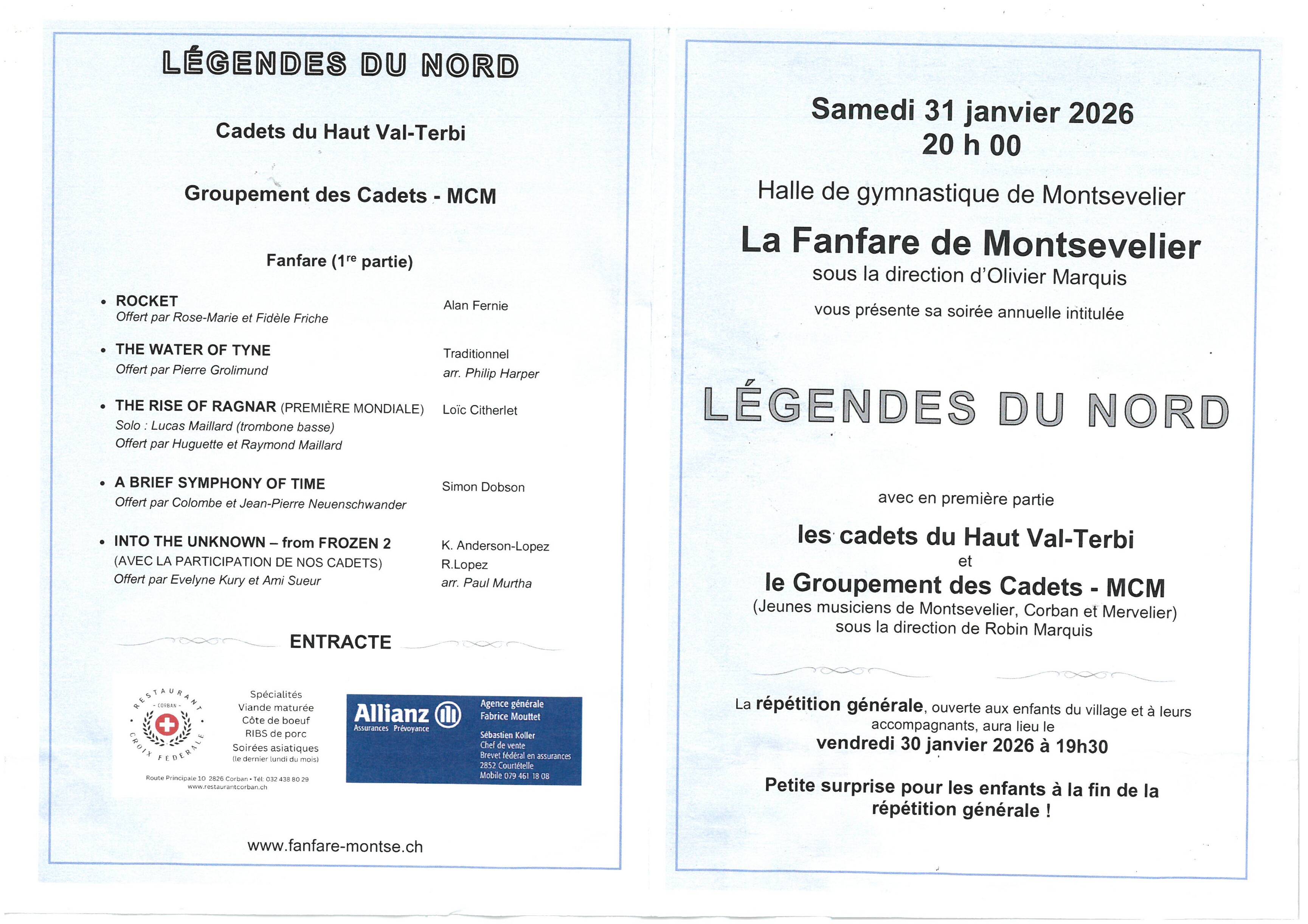 Soirée annuelle - Fanfare de Montsevelier